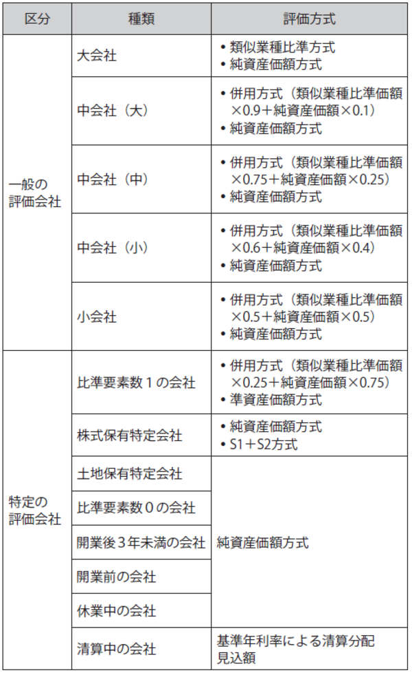 会社区分と原則的評価方法を図表1にまとめているので、参考にしてください。