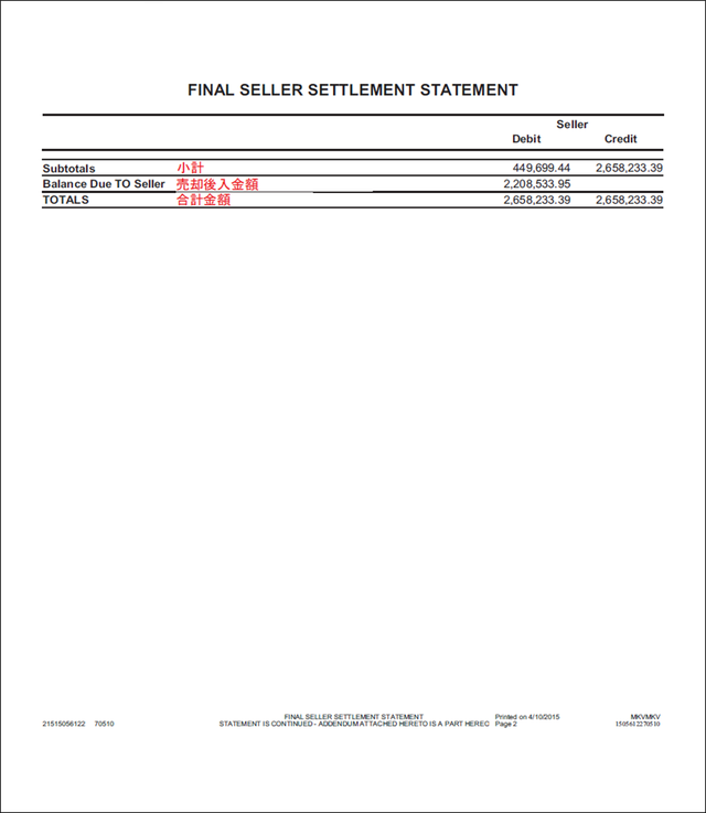 今回は売主側のほうのクロージングステートメントを見ていきたいと思います。