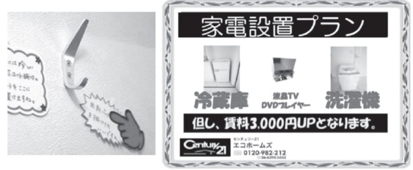 またフリーレントやキャッシュバック、家電付きプラン、家具付きプラン、など現場で再現しにくいサービスも、写真や文章で示したポスターにしてはっておけばわかりやすい。