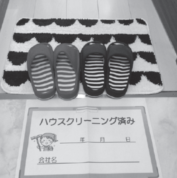 清潔なスリッパに「ハウスクリーニング済み」の表示を