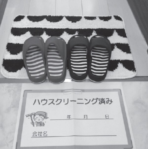 部屋の入り口には清潔なスリッパを用意し、ハウスクリーニング済みの表示も目立つようにしよう。さらに風呂や水回りの排水溝には専用のラップをつけ、クリーニング済みを印象付けるようにしたい。