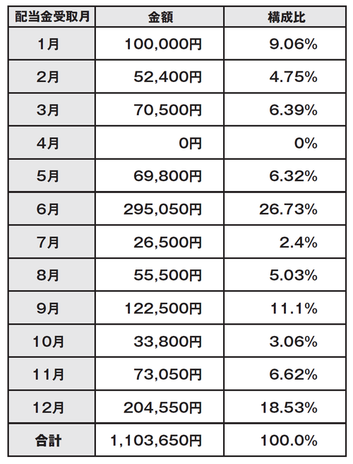 6月と12月を合計すると約45%となり、受取配当金の約半分が、2つの月に集中しています。