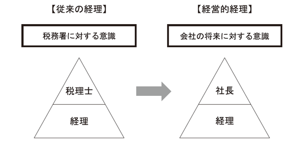 このような状況を改善するには,社長がまず資金の重要性について本気になって考え,経理の意識から変えていく必要があります。中小企業では,経理は「税理士の下請け」として決算書作成をメイン業務としており,ここを変えていくのです。まず,資金と企業の将来を考えるのが経理の仕事だと認識させ,そして経理が工場や営業など組織を横断的に統率していく体制をつくる必要があります。これこそ,「社長の下請け」としての本来の経理の役割です。決して税務署や税理士のために経理がいるのではありません。