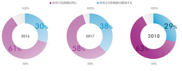 ●2017年と同じ額を取得すると回答した投資家は63%で、前年の58%から5ポイント増加。一方、2017年の取得額より増加すると回答した投資家は29%で、前年の38%から9ポイント減少