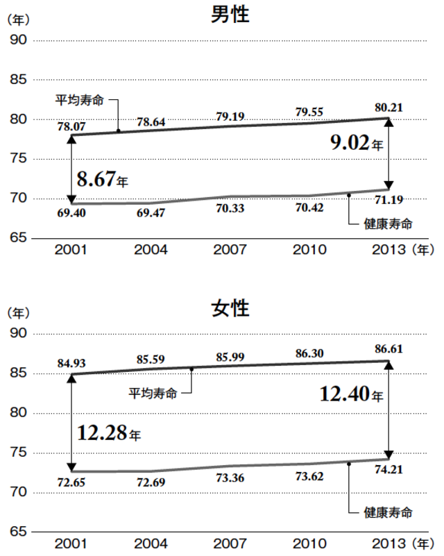2016年の厚生労働省の調査によると、日本人の平均寿命は女性で86.99歳、男性で80.75歳。WHOの同年調査によれば、男女を合わせた平均寿命で日本は堂々の世界1位となっています。