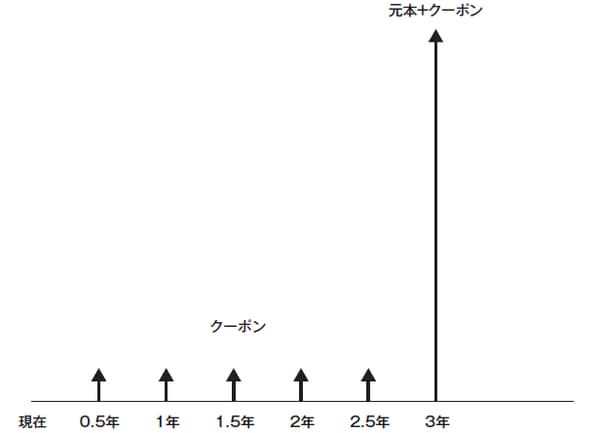 [図表1]債券のキャッシュフロー(満期3年、半年払いクーポンの場合)