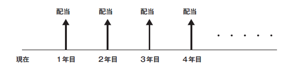 このように、株式は、ずっと続く配当キャッシュフローの系列に置き換えて考えることができます。