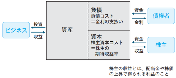 は、調達金額全体のうち、株主資本が何割を占めているかを示しています。要するに、この部分は、株式と負債の調達比率を表しているということです。つまり、この式は、負債コストと株主資本コストを、株式と負債の調達比率で加重平均していることになります。