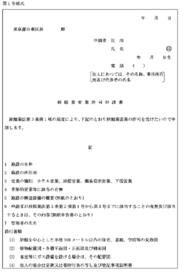 1.旅館業営業許可申請書