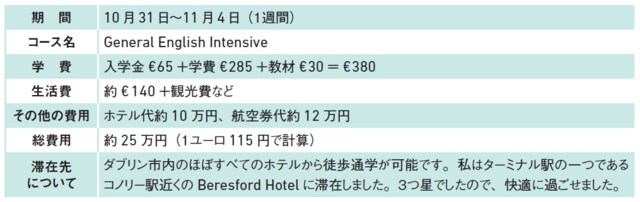 ダブリンは日本人留学生が比較的少ないので、留学の穴場と言えると思います。さらにこの学校では同じクラスに同言語を話す生徒が一定数以上集まらないようにできるだけ配慮してくれます。