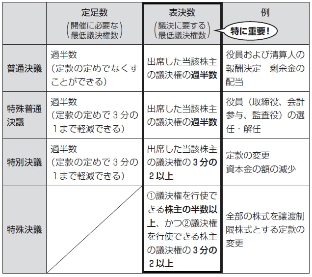なお、権利の内容は持株比率によって変わってきます。創業役員(創業社長を含む)として出資総額の3分の2以上を確保すれば、創業役員以外からの予期せぬ議決を防止でき、安定的な経営状態をつくることができます(図表参照)。