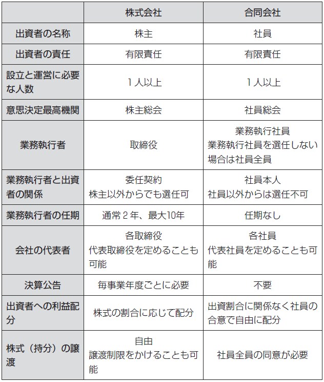 特に、実務上での違いとして大きいのは代表者の名称の違い。株式会社の場合、社長の名刺に書かれる役職名は「代表取締役」ですが、合同会社の場合は「代表社員」です。せっかく社長になるからには、「代表社員」よりは「代表取締役」と記載したい人が多いかと思います。