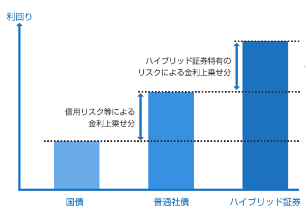 期限付の劣後債は、一見するとほとんど普通の社債と変わりません。 同じ企業が発行する同じ期間の社債と比較すると目を引くのが、高い利回り。債券と同じように見えても、 実は株式としての性格を一部持っているという証券の特性に起因します。