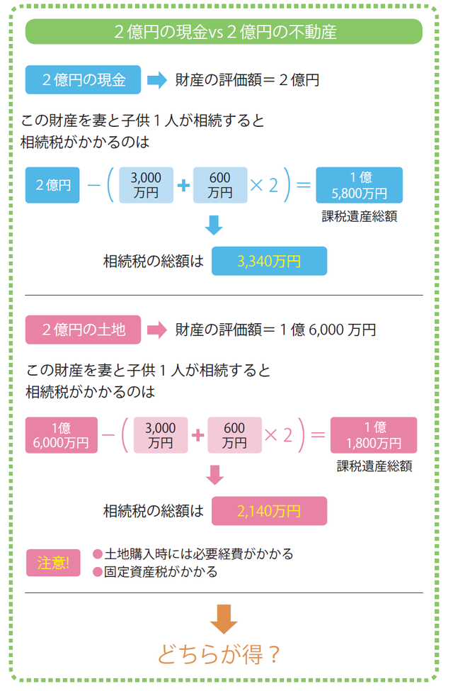 そこで、「路線価」は適正価格(公示価格等)よりもあらかじめ20%ほど低い価格に設定されています。つまり、現金を土地に替えるだけで約20%も財産の評価額を減らすことができるのです。