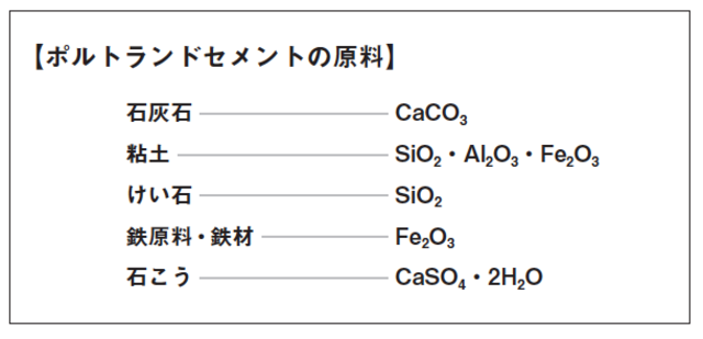 ごく簡単に説明しますと、コンクリートとはポルトランドセメントに砂と小石を入れて水を加え攪拌したものです。主要成分であるポルトランドセメントの原料となっているのは石灰石など5種類ほどの物質ですが、そのすべてが均等に使われているわけではありません。これらの成分のなかで、石灰石と粘土が大部分を占めています。