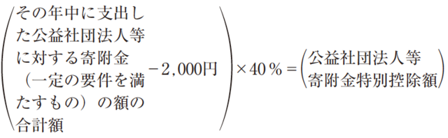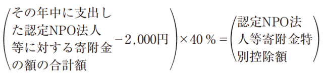 (その年中に支出した特定寄附金の額の合計額)−(2,000円)=(寄附金控除額)