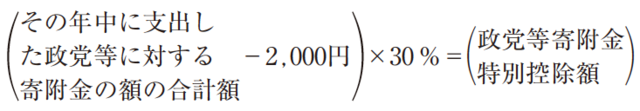 ①政党等寄附金特別控除は次の算式で計算します(措法41の18)。