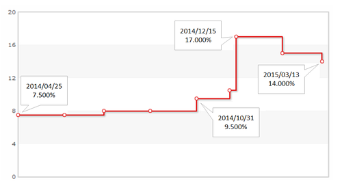 ロシアの政策金利は、2014年12月中旬に10.5%から17%に引き上げられ、その後徐々に利下げの方針がとられていますが、未だに高水準にあります。一方日本は、ゼロ金利政策により低金利での調達が可能なため対ロ投資には魅力的な環境だといえます。