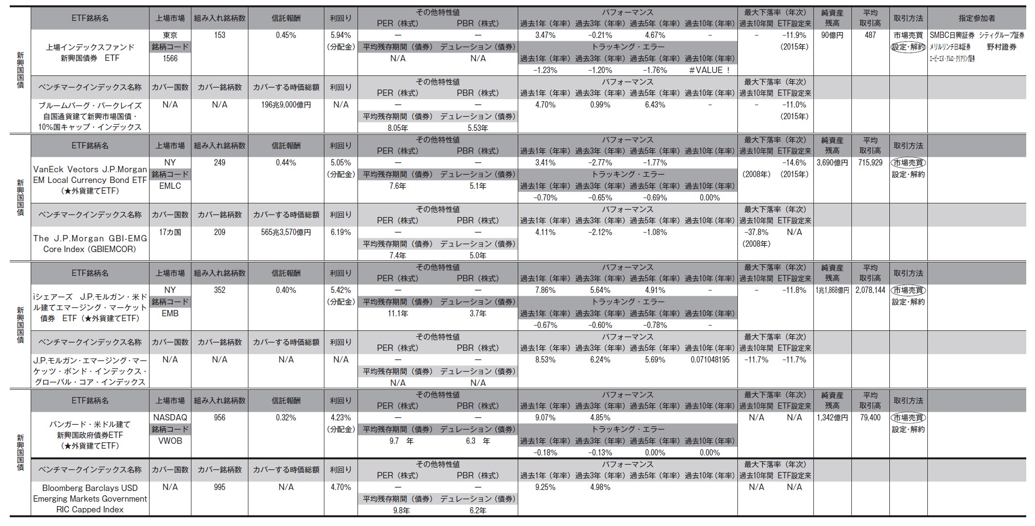また、下記にオーソドックスな金融市場をトレースするETFの参考リストを付けている。本文で解説した金融市場とETFの価格変動特性、インカム利回り、運用コスト、流動性(市場売買/設定)などの事項を照らし合わせていただくとより読者の理解が深まるのではないかと期待している(なお、参考リストのETFへの投資は自己責任であることは言うまでもない)。