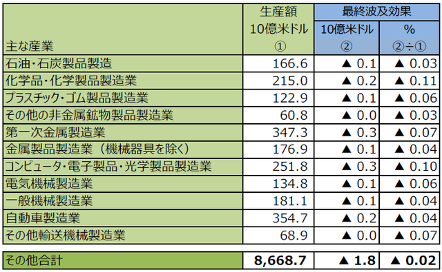 米中貿易摩擦が日本企業の生産に与える影響を試算しました。米中共に制裁措置を発動し、関税率分だけ制裁対象分の生産活動が低下すると仮定すると、日本の全産業で生産が0.02%減少するとの結果になりました。間接的な効果を加えればさらに影響が強まること、試算の前提となった2014年当時に比べ中国経済が着実に拡大していることなどから、仮に10倍としても0.2%減少の影響にとどまります。関税のかけあいが2国間でとどまるのであれば、日本企業の活動への影響は限定的と言えそうです。