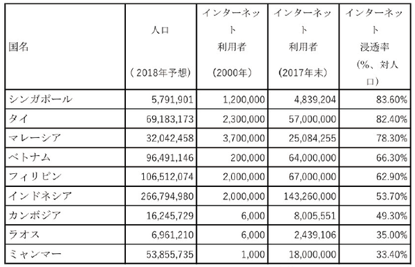 [図表4]2017年12月時点 インターネット利用者(ブルネイ除く)