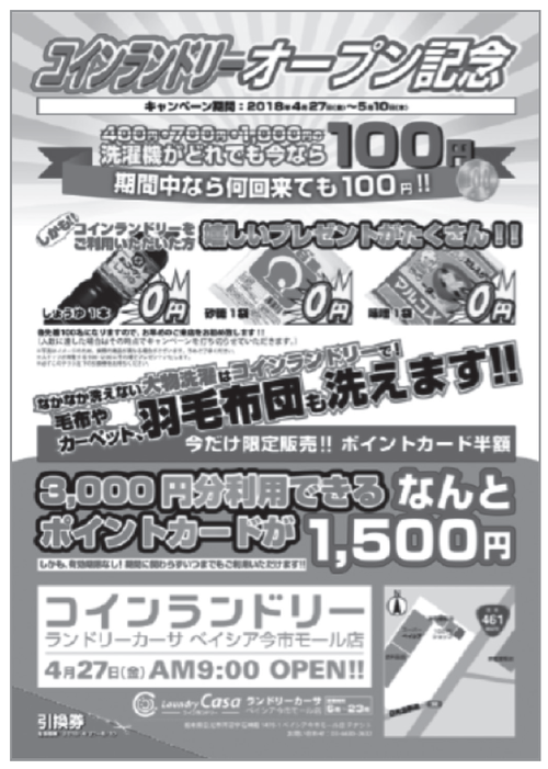 ①オープン時にコインランドリーのお得なキャンペーンを打ち出す