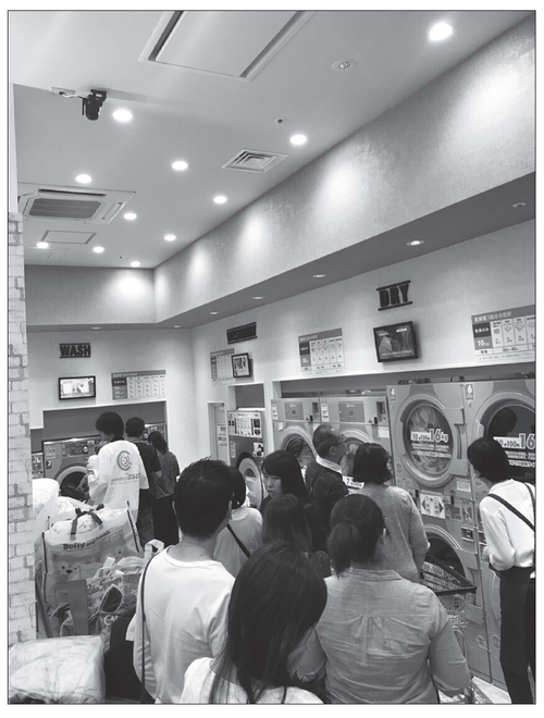 [写真1]独自のマーケティングによりオープン初日から行列ができる(ランドリーカーサ・イオンモール幕張新都心店)