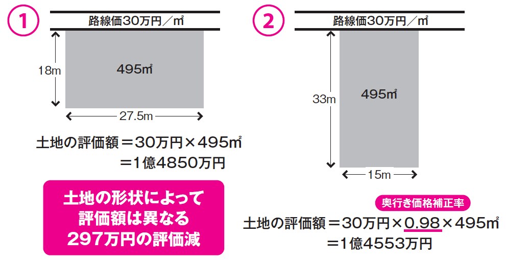 3:同じ路線価の土地でも、形状などによって評価が異なるため、節税の可能性がある。