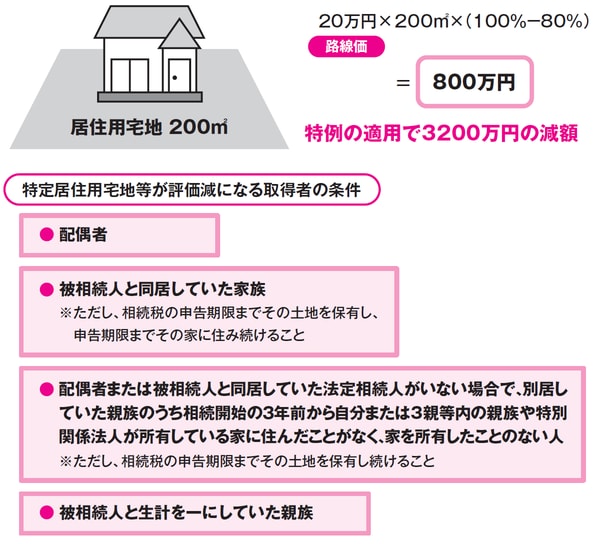 相続開始の直前に被相続人が住んでいた宅地等で、一定の要件に該当する被相続人の親族が相続または遺贈により取得したものについては、330㎡までの部分について評価額が80%減額されます。