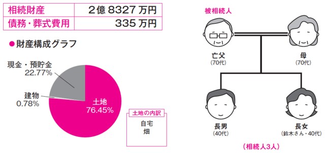農地の納税猶予を受けると納税額は減らせますが、2人の子どもは農業を継続できないため、今回は、相続した預金を納税資金に充てるようにしました。母親が相続した割合が大きいため(配偶者の税額軽減により1億6000万円まで無税適用)、今後、二次相続に向けた生前対策が必要になります。