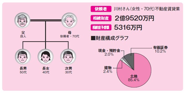 この機に親子で話し合い、自宅は川村さんと長男一家が住み、長男が相続していくようにしました。次男はすでに自宅の土地として使用しているところを相続、長女は嫁いでいるので、収益不動産を相続することで合意が得られたのです。