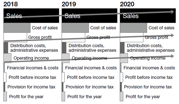 理郎:Operating income(営業利益)が減っているということは、Distribution costs(販売費)や Administrative expenses(一般管理費)がどんどん増えているということですよね。