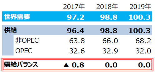 (注3)2017年は実績。2018年と2019年はOPECによる予想。但し、2018年と2019年のOPEC生産量は全体の需給が均衡するとの仮定のもとでの弊社算出値。