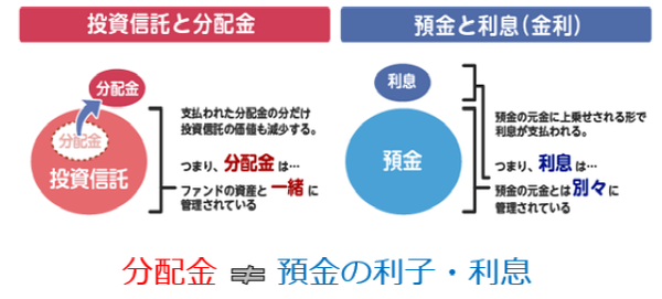 [図表2]預金の利息(金利)と異なる、投資信託の分配金