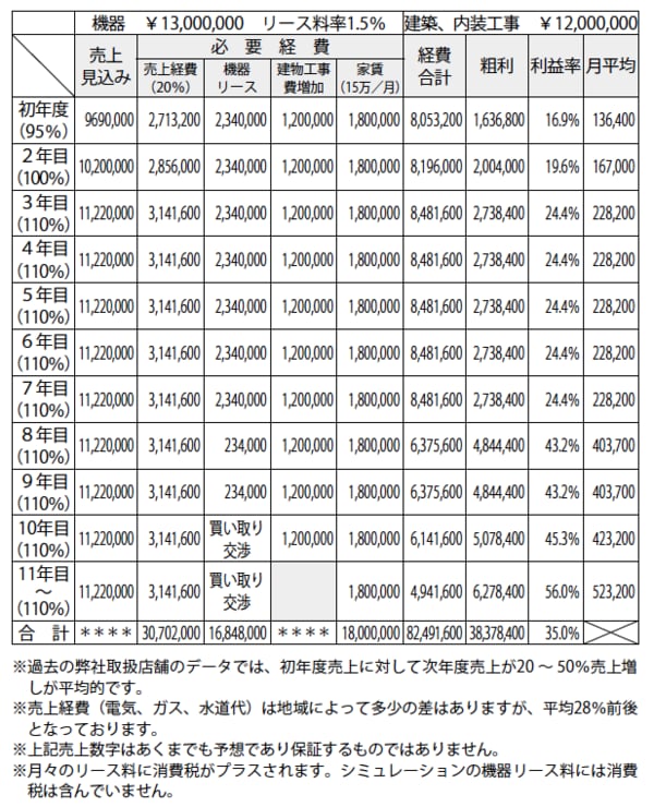 コインランドリー経営を始めるに際し、どれくらいの売上げが期待できるかを予測するだけでなく、リースやローンの審査の際に金融機関から求められるので、必ず作成しなければなりません。現状として、ほとんどの機械販売会社や機械メーカー、フランチャイザーがオーナーに代わって作成してくれます。