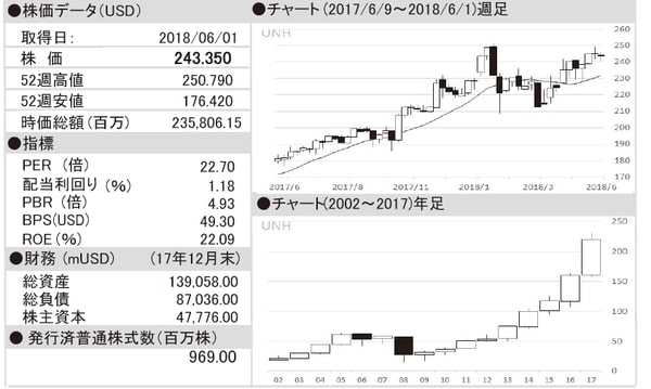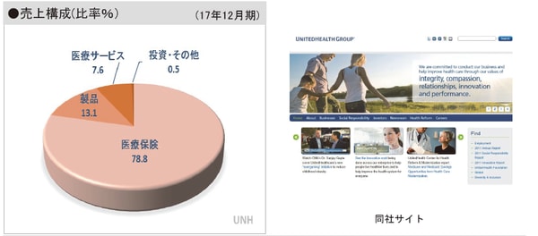 医療保険や医療サービスを手掛ける。傘下の「ユナイテッド・ヘルスケア」は、消費者向けの医療給付、退職者を対象とした高齢者向けの健康管理商品やサービス、自治体の医療ニーズに対応した公衆衛生管理プログラムなどを提供。