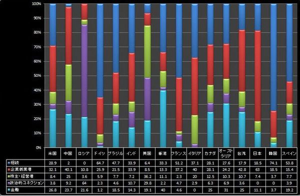 相続によって財産を得た超富裕層の比率が、弱肉強食のイメージの強い米国や英国より、共同体主義的でリベラルなイメージの強いヨーロッパ大陸諸国の方が格段に高いというのは、ある意味驚きかもしれません。