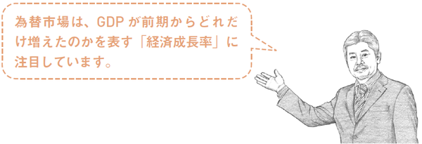 そして、その金額が前期からどれくらい増えたのかを率で示したものを「経済成長率」(GDP成長率)といい、市場はこの「経済成長率」に注目しています。なお、GDPが前の期から減少した場合は「マイナス成長」と呼びます。