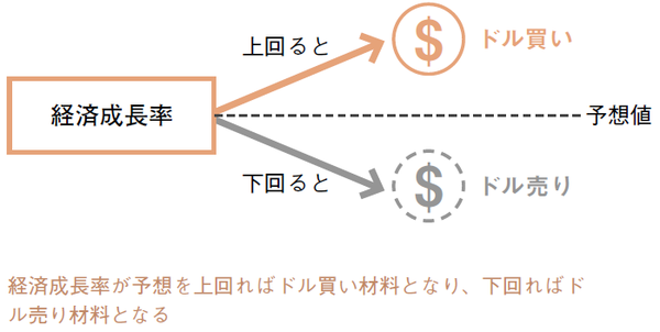 「経済成長率」が予想を上回ればドルが買われる傾向が強く、下回ればドル売り材料になります(図表2)。