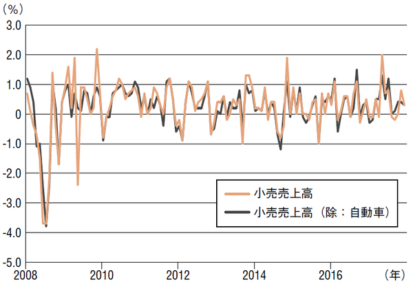 一方、予想を下回る伸びにとどまったり、予想外に減少したりすると、ドルが売られやすくなります。なお、自動車販売は季節ごとの変動が大きいため、これらを除いた「コア小売売上高」も注目されることになります(図表4)。