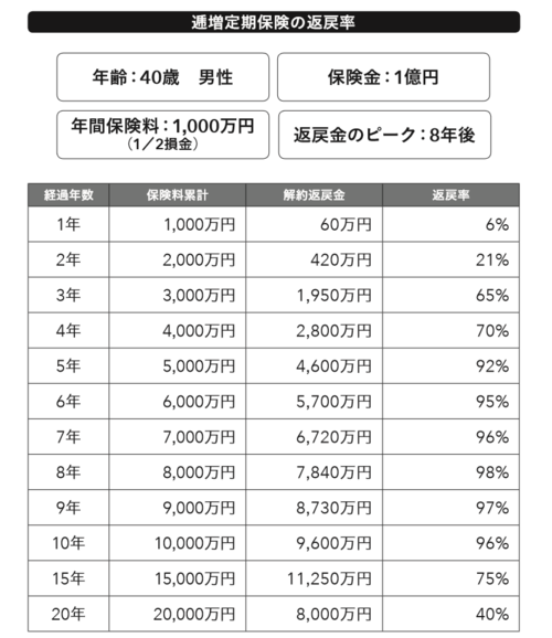 このような保険の代表格は逓増(ていぞう)定期保険と呼ばれるもので、ピーク時の返戻率が高いのが特徴です。しかし、裏を返すと、ピーク時以外の返戻率についてはかなり抑えられているので、短期間で解約をしてしまうと大損してしまうことになります。保険の加入は、慎重に慎重を重ねて検討するようにしてください。