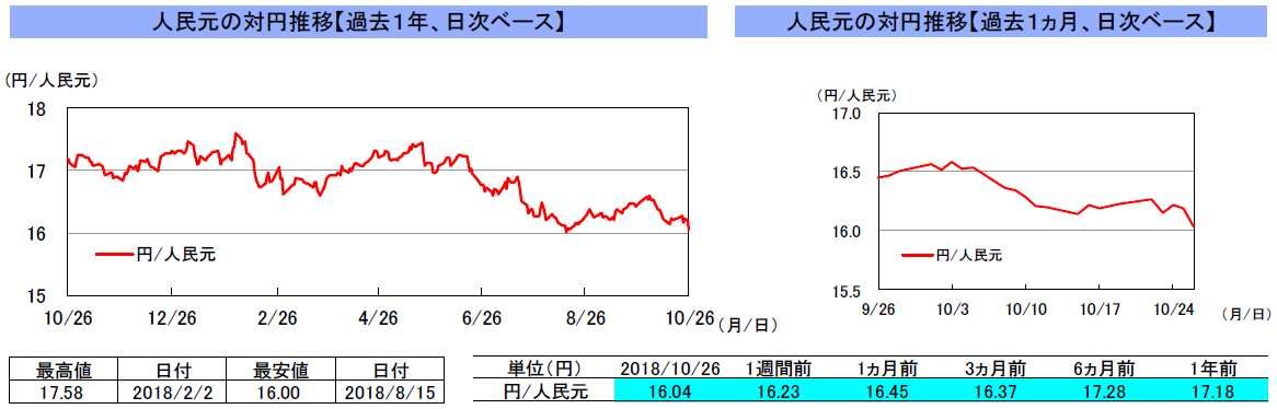 先週の中国本土市場は、上海総合指数が前週末比+1.9%、深セン総合指数が+2.1%と上昇しました。週前半には、中国政府による相場下支え策への期待から株価は上昇しましたが、週後半には一部米国企業の失望的な決算を受けた世界的な株価下落の影響を受けて、株価の上値が抑えられました。香港市場は、H株指数が前週末比▲1.6%、レッドチップ指数が▲2.0%と下落しました。人民安が進んだことで資金流出懸念が高まったことや、米国株を始めとする世界的な株価下落に連れて、株価は下落しました。