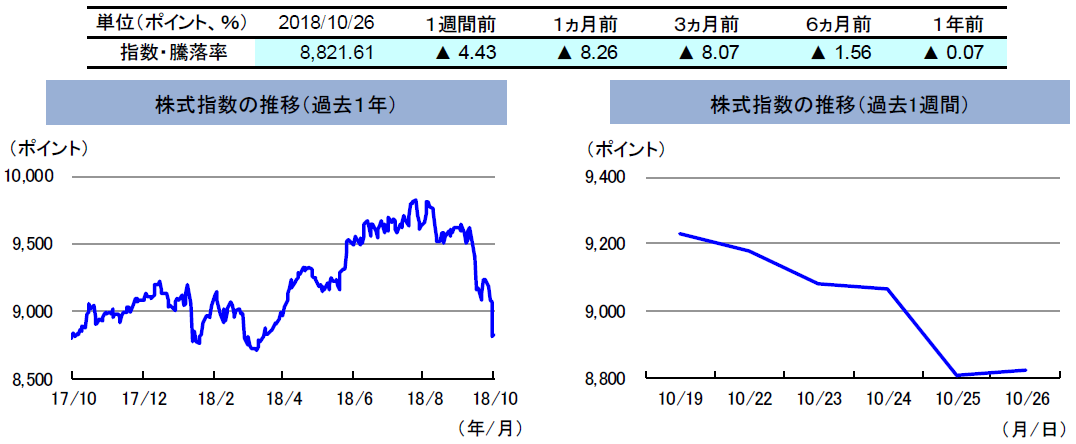 先週の豪州の3年国債利回りは、低下しました。先週は、サウジアラビアや欧州の政治情勢の不安感の高まりや、一部米国企業の業績発表が失望的なものだったことを受けた株価の下落に伴い、豪州の3年国債利回りは低下(債券価格は上昇)しました。