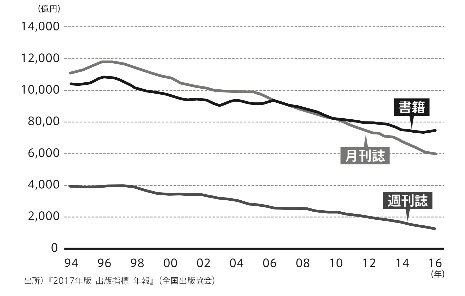 このように、雑誌も新聞も部数が右肩下がりで減り続けているのですから、当然、雑誌
