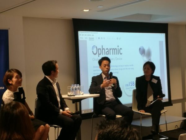 この第2部には、第1部に登壇した2人のほか、スタートアップ企業のCEO2人加わりました。企業やメンバー内で用いることのできる、SNSのようなソフトウェアサービスを提供するJuven LimitedのCEO、Mr Edmond Chan、眼の中に注射器を使わずに薬を注入できる新技術のハードウェアを開発中のOpharmic Technology (HK) LimitedのMr Langston Suenです。