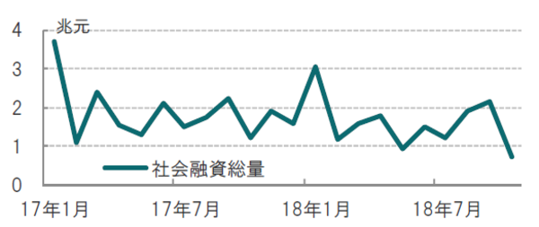 2つ目は10月の地方政府特別債発行の減少です。中国当局は地方政府にインフラ投資に資金を調達する特別地方債の年間発行枠(18年は1兆3500億元)を割り当てています。中国財政省が8月に、インフラ投資の拡大を意図して早期に特別地方債の発行枠消化を促したことから、既に発行限度に近づいたため10月は発行が抑制されました。