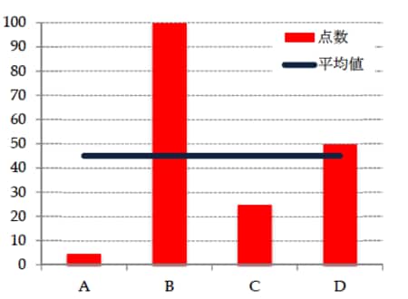 まず、A君80点、B君65点、C君60点、D君75点の例1のケースです。例1の平均値は70点です。この70点という平均値は、4人それぞれの点数からそれ程かけ離れた点数ではなく、ある程度全体像を表しているように見えます(図表1)。次にA君5点、B君100点、C君25点、D君50点の例2のケースです。このケースですと、4人の平均値は45点となります。D君以外の点数は平均値から離れており、このクラスはだいたいみんな45点ぐらいだなと考えてしまうと大きな誤解をしてしまいます(図表2)。