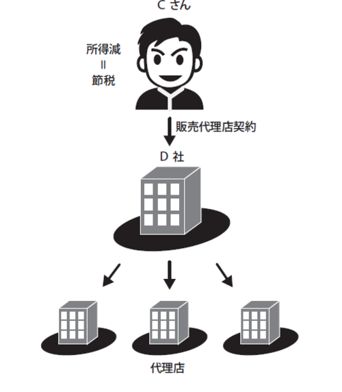 法人としてD社を立ち上げ、CさんとD社との間で販売代理契約を締結させ、Cさんと代理店の間の業務を担わせるようにしたのです。これにより、Cさんに入る収入の一定割合を新規設立した法人にとどめることができ、大幅な節税を実現しました。