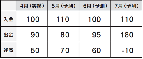 会社の現金がいつ、どれくらい足りなくなるのか。経費の削減や支払いの延期で対応可能か、銀行に追加融資を申し込む必要があるか。その発見が早ければ早いほど、しっかりと準備をして、資金不足を回避できるようになります。