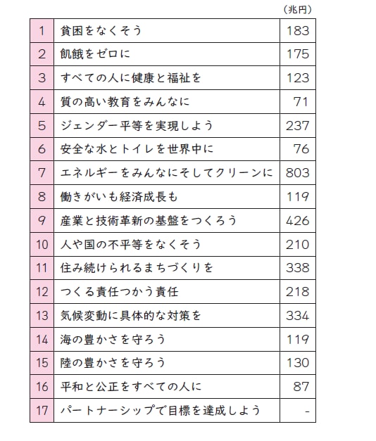 記事の試算によると、17個の中でもっとも規模が大きいのは「エネルギーをみんなにそしてクリーンに」であり、要するに、再生可能エネルギー関連である。規模が大きければ、その中で成長する企業も利益を伸ばしやすい。